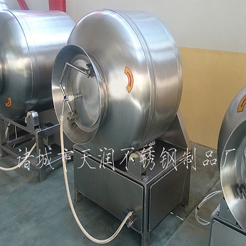 是在真空狀態下,利用物理沖擊的原理,讓肉在滾筒內上下翻動,相互撞擊、摔打、達到按摩、腌漬作用。
